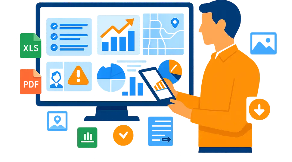 Desde checklist hasta evidencias, firmas o ubicaciones: genera reportes automáticos que revelan lo que ocurre en campo.